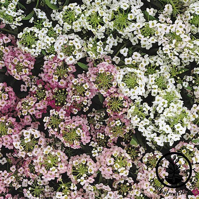 Lobularia maritima, or more commonly known as Alyssum or Sweet Alyssum, is a low-growing species native to the Mediterranean and Canary Islands. Sweet Alyssum is one the most fragrant blooms available and one of the most award-winning. The genus names Lobularia is derived from the Latin word lobules which means "small pod." The specific name maritima meaning "coastal." Alyssum flower seeds - Easter Bonnet Series.