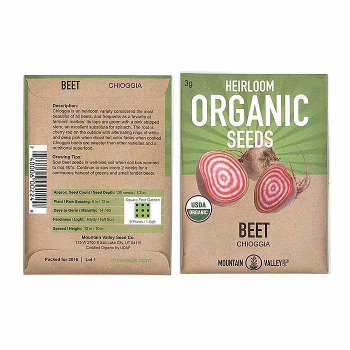 - Chioggia Beet Color: Organic heirloom Chioggia is famous for its red and white concentric roots and long, leafy greens with purple stems