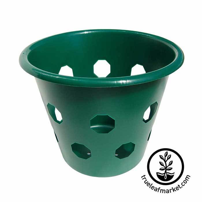 Great for commercial and residential uses, this revolutionary hanging basket will grow vegetables and display bright flowers with minimal effort. The innovative design showcases flowers by granting their blossoms and stems the space to grow long and healthy. With the holes allowing oxygen to reach the roots, your plants will grow strong. The basket itself disappears behind the growth of your plants, making it easy to pinch or deadhead flowers or to trim and harvest your vegetables.