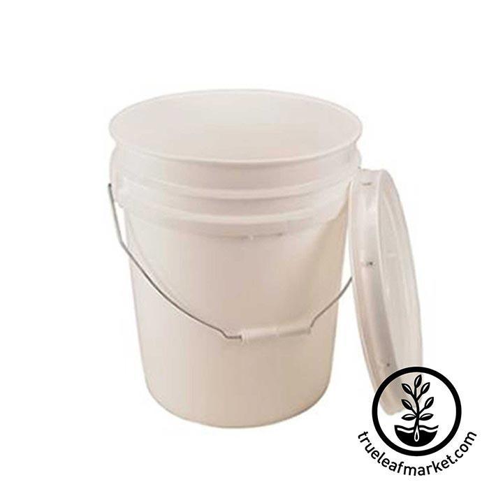 White, 5 gallon food grade buckets with lids. These storage pails are made with FDA approved plastic 90 mil thick, making them amazingly strong and solid. The all-metal handle has an attached plastic molded grip that protects hands from heavy loads. Lipped lids make stacking safe and easy.