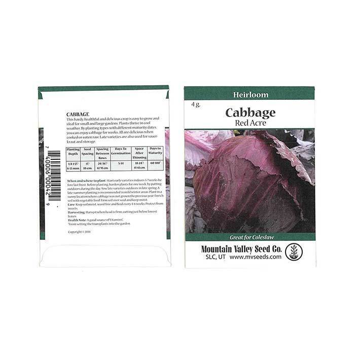 100 days. The Red Acre cabbage is a hardy garden crop that can be grown in climate zones three through nine. The plant produces medium sized, maroon heads that can liven up any dish. After around one hundred days, the heads can be harvested. They provide a sweet and delicate flavor.