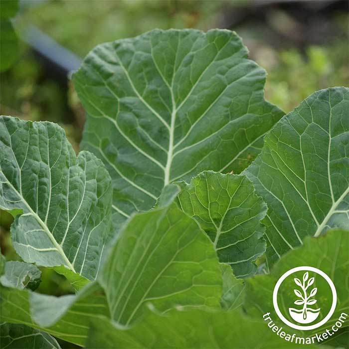 70 days. Huge, cabbage-like, blue-green, slightly crumpled, juicy leaves. Non-heading type. Heat and cold tolerant. Mild cabbage-like flavor improves with light frost. Slow to bolt. 2 to 3 feet tall. High in Vitamin A, B1, B2, and C. Good freezing and canning variety. Approx. 8,000 seeds/oz.