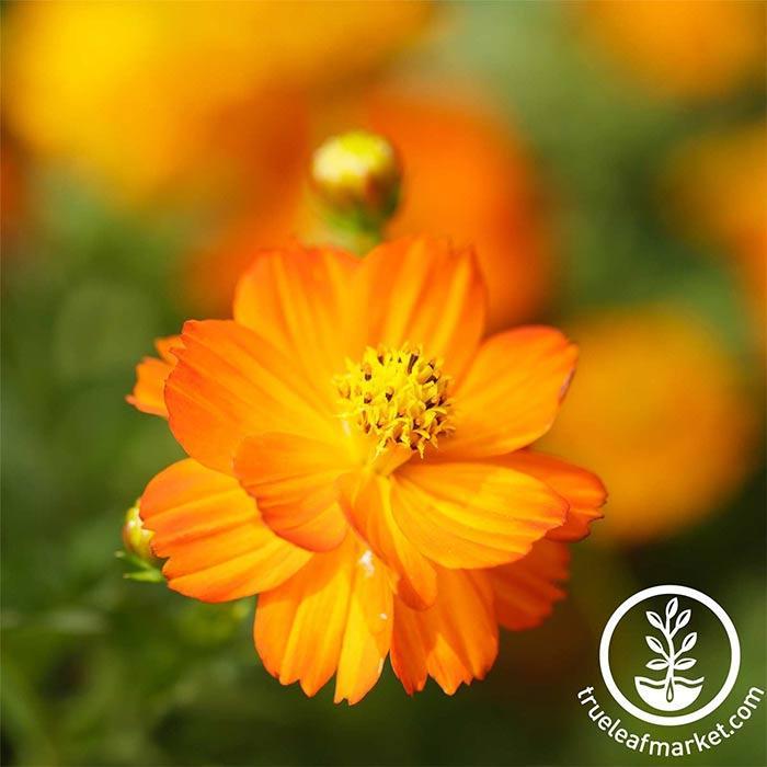 56 – 63 days. Bright Lights cosmos seeds grow a playful, robust, and familiar annual sown among sunflowers and wildflowers. Bright Lights seeds grow hardy, drought tolerant cosmos shrubs as high as 36” tall with sunburst golden 2 – 3” daisy-like blooms. Bright Lights seeds are an ideal mound to highlight the back of the garden, fence, siding, or any wide open space. Bright Lights seeds promise long-lasting blooms that are a floral shop favorite used to brightly excite any seasonal fresh cut arrangement, basket, or bouquet.