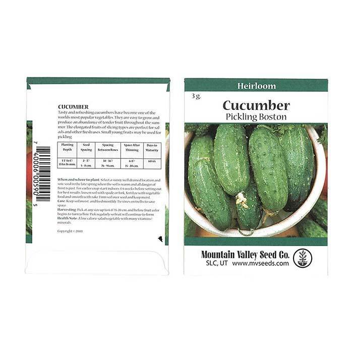 Cucumbers usually have both male and female flowers. It is the female flower that produces fruit while the male flower produces primarily pollen. Sow between March and April. Plant this heirloom next to corn or radish and avoid potato, cauliflower, and basil. Boston Pickling has a vine growth habit that spread across the soil. Harvest between July and August--when the fruit is 6 to 7 inches long. If cucumbers turn yellow, it's too late. Pick fruit early in the morning and refrigerate for the best flavor.