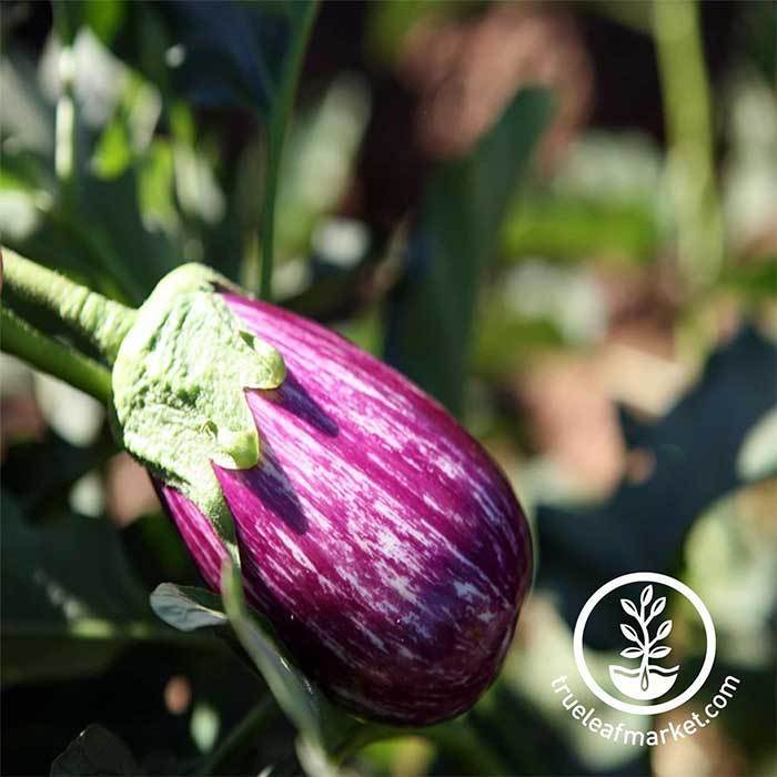 50 days. AAS Winner for 2005. New miniature eggplants are white with violet/purple stripes. The fruit are non-bitter, with a tender skin and few seeds. The elongated, oval eggplants can be picked when quite small at 1-2oz or left on the plant until double that weight and the flavor and tenderness remain. The petite plant reaches only 2 ½ ft tall and wide and adapts well to container gardening. Mountain Valley Seeds carried these Eggplant seeds in a variety of sizes including both retail and wholesale prices. Order online or stop by today!
