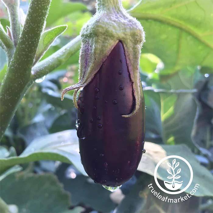 After transplanting outdoors, you should water the Long Purple eggplants every day to keep the soil moist. Since the crops can become heavy, it can be helpful to use a post, pole, or other support. When the globes are glossy, you can harvest them by snipping them off the vine.