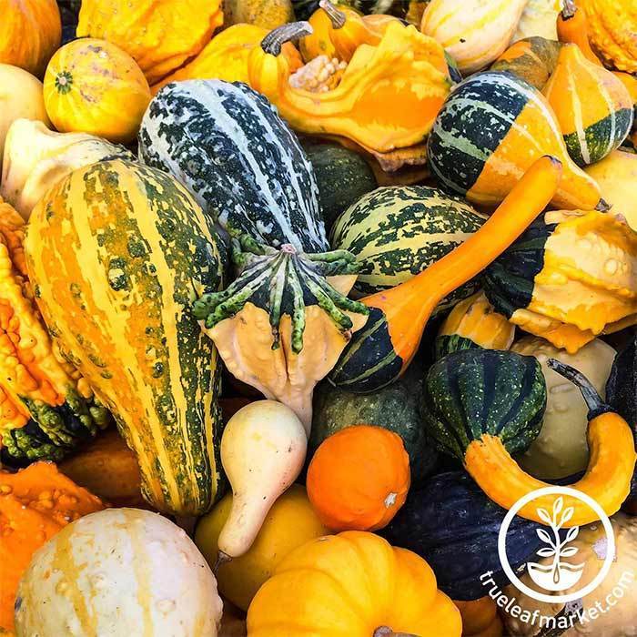 100-120 days. Cucurbita pepo Mix of many large types. Approximately 255 seeds/oz.; with sprawling vines, gourds require widespread areas for growth; rows can be planted 2 - 3 feet apart; spectacular, colorful gourds with smooth or coarse surfaces have amazing potential for arts, crafts, and inclusion in the kitchen.