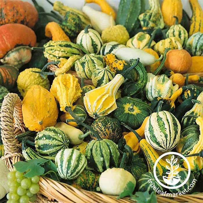 90-120 days. A collection of different shapes in shades of white, cream, gold, yellow and green. Good for decoration. This mix of small, non-gmo gourd seeds is a collection of gourds that will grow into different shapes and shades, including green, white and yellow. The Gourds seeds do best in well-drained soil and full sun.