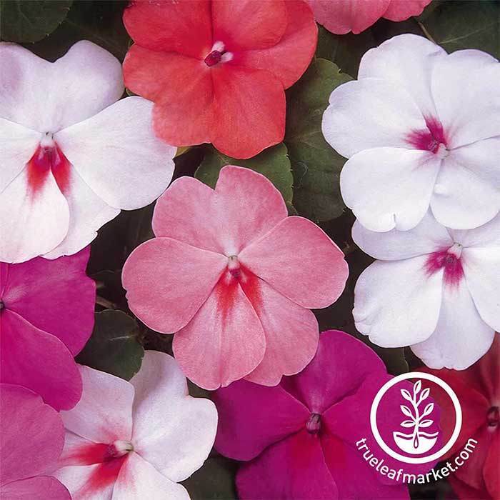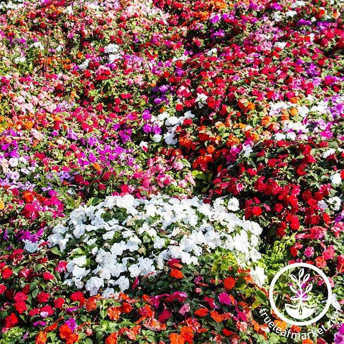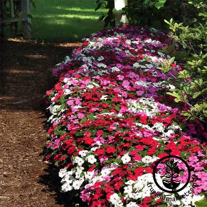 70 – 77 days. Dazzler Series impatiens seeds boast the most popular commercial blooms and nostalgic grows in the United States. Dazzler Series impatiens seeds deliver hardy and early Spring color that will glow all the way up to the frost. Dazzler Series seeds grow vigorous, heat-tolerant impatiens that thrive in a wide variety of humid and shaded gardens. Dazzler Series impatiens seeds mature as compact, yet durable 8 – 10” tall mounds densely packed with 1 - 2” blooms, a perfect annual ground cover to accent any walkway, fencing, or flower bed. 500 seeds.