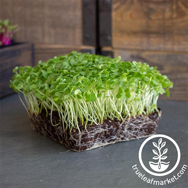 Certified Organic. Up to 12 days. Robust and substantial microgreen. Blue Vates has a mild spinach flavor, making it a great micro or baby salad green. Fast & easy to grow—like most brassicas—Blue Curled kale is a great choice as a base for any microgreen salad.