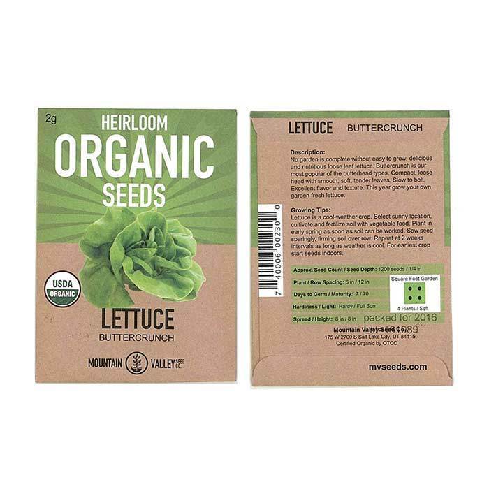 AAS Winner. 65 days. Recommended by Utah State University, Organic Buttercrunch is the most popular of the butterhead varieties. Approx. 16,000 seeds/oz. These non-GMO Buttercrunch seeds grow into vibrant, green heads of lettuce that are ready to harvest in 60 to 70 days. The Buttercrunch lettuce can be grown in most zones, including colder zones. The leaves of the Buttercrunch have a mildly sweet, buttery flavor.