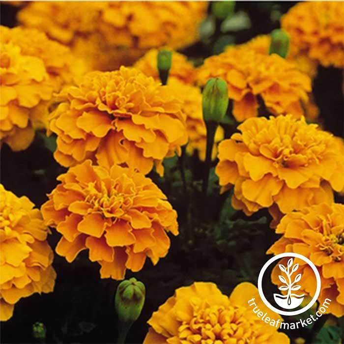 Bonanza Series marigold is a hardy full sun performer and most commonly sown directly after the frost but, for earliest blooms, begin seeds 6 – 8 weeks indoors prior to the frost. Marigolds will take 7 – 21 days to germinate in full lighting. Plant 2 – 3 Bonanza Series marigold seeds ¼” deep and 6” apart in average, evenly moist, and well-drained soil in full sun. Bonanza Series marigold is a vigorous full sun performer native to Mexico and known to tolerate gardens prone to heat, drought, and clay soils. Plants must be properly drained and ventilated are may be susceptible to powdery mildew, root rot, leaf spots, and Botrytis. Marigold has no serious pests but monitor regularly for spider mites and thrips. Bonanza Series marigold seeds mature in 56 – 63 days as dwarfed 8 – 12” tall shrubby uprights with a 12 – 24” spread of large 2” blooms.