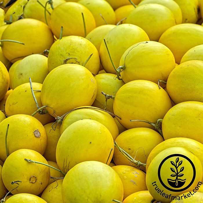 80 to 120 days. AAS Selection for 2004. The Amy Hybrid Melon seeds will grow as a vine that produces bright yellow melons. The melons have a sweet taste, similar to a honeydew melon, with a smooth rind. The Amy Hybrid Melon does best in full sun and can be harvested in one hundred days. This hybrid produces eye-catching, bright golden yellow melons without netting or sutures. The radiant color indicates when the melon is ready for harvest. The white, fragrant flesh in noted for its sweet flavor and firm texture. Small seed cavity. Vigorous vines spread to 6 feet. Approx. 595 seeds/oz.