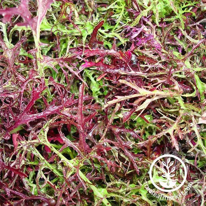 45 days. 20 days for baby leaf. With a mild peppery mustard flavor, this green is great for salads as a baby green or a full-size green. The stalk has a great flavor as well and the splashes of red add color to mixes. It is a fast grower and has good heat tolerance allowing it to bolt later than lettuce. Approx. 17,000 seeds/oz.