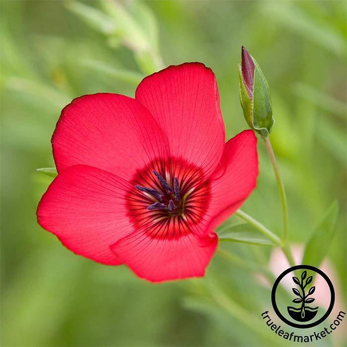 77 – 84 days. Scarlet Flax seeds promise exotic, radiant, and perfectly-suited linum shrubs for many dry and temperate climates. Scarlet Flax seeds will excite your home, patio, and garden with 18 – 24” tall African linum bursting with 2” wildflower blooms of vibrant scarlet and crimson. Scarlet Flax linum seeds are vigorous full sun performers and are an ideal grow for kids or novice gardeners to broadcast just like wildflowers. Scarlet Flax linum seeds grow a wonderful fresh cut bloom perfect for rustic wildflower baskets, bouquets, and centerpieces.